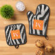 Set De Manoplas Bandas de cebra artística Naranja y monograma rosa