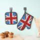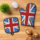 Bandera del Reino Unido azul rojo brillante purpurinas Oven Mitt & Pot Holder Set. Espumosamente bandera británica del Reino Unido con chispas rojas, blancas y azules en purpurina. Usamos fotos de chispas y no de purpurinas reales.