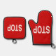 Conjunto de soportes de Oven Mitt y Pot, impreso con la redacción Stop Rótulo ilustracion de diseño de obras de arte de The FabricSeal en Zazzle #ZazzleMade https://www.zazzle.com/store/thefabricseal Este es un estilo clásico y atractivo de alto al Rótulo con letras blancas y diseño de señalización de caminos de color rojo de fondo. Serio, divertido, divertido, humorístico, cómico y una brillante idea para dar regalos. Popular señalización de señalización de la parada de tráfico de la marca retro pop art vintage estándar mundialmente famoso. 👩 🍳 👨 🏼 🍳 Mejore sus aventuras culinarias con nuestros Oven Mitts y Pot Holders, elementos esenciales para la cocina que combinan perfectamente la funcionalidad con el estilo personalizado. Diseñadas con precisión y cuidado, estas herramientas de cocina están diseñadas para elevar tu experiencia culinaria y añadir un toque de originalidad a tu cocina. Pieza de silicio sin deslizamiento para mayor estabilidad y seguridad durante el uso. Diseño de bucle colgante para mantener las cosas ordenadas y ahorrar espacio. Disponible con una selección de protección térmica de silicona negra o colcha plateada. ¡¡¡¡¡¡¡Consigue Tu Hoy!!!!!
