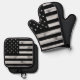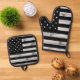 Bandera estadounidense Rustic Wood Black White Patriotic America Oven Mitt & Pot Holder Set. 4 de julio Bandera rusa de EEUU en madera negra y blanca. ¡Usamos fotos de madera!