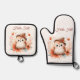 Set De Manoplas Bechuza de otoño sentada en una rama