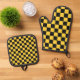 A black and yellow checkerboard pattern with alternating squares creates a bold, geometric design. The pattern appears balanced and vibrant.