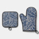 Set De Manoplas blue floral pattern with diverse leaves & blossoms