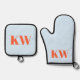 Set De Manoplas Blue Orange Monogram Initials Kitchen Gift