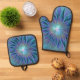 Una flor de fantasía abstracta y moderna con tonos azules y violetas. Diseñar para su portaplatos y el horno mitt y más.