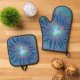 Una flor de fantasía abstracta y moderna con tonos azules y violetas. Diseñar para su portaplatos y el horno mitt y más.