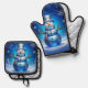 Beautiful Blue Snowman Snowflakes Oven Mitt & Pot Holder Set