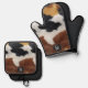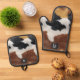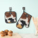 Oven Mitts & Pot Holders design featuring an Image of brown, black, and white cowhide fur texture print.