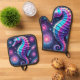 Este diseño presenta un colorido y vibrante caballito de mar púrpura, con un fondo galáctico.