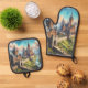 Set De Manoplas Castillo medieval en un paisaje montañoso