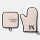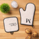 Presentamos nuestro juego personalizado de manta de horno y soporte para ollas, donde la elegancia se une a la funcionalidad. El estuche mitt presenta su monograma en un elegante tipo de letra serif, mientras que el portaobjetos combina su nombre en un guión moderno de pincel escrito a mano con su apellido en un elegante serif. Diseñado en un estilo minimalista y lujoso, este conjunto le aporta un toque personal sofisticado a su cocina.
