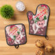 Set De Manoplas Cerdo romántico con Rosas Navidades graciosos