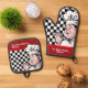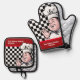 Set De Manoplas Chef Black White Checkerboard Red Family Kitchen