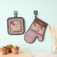 ¡Este divertido juego de utensilios de cocina y de horno es un regalo maravilloso para el Día del Padre! Cuenta con una plaza con parrilla y condimentos, además de una tipografía que incluye filete, barbacoa, tomates, cordero, marinada, verduras y más. El fondo es un cheque de gingham rojo y blanco y la parte superior de la hormiga del horno tiene un panel rojo sólido con un borde negro para personalizar con el nombre de su chef. También hay dos toallas diferentes, y un delantal a juego en nuestra tienda para completar el conjunto.