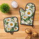 Set De Manoplas Clásico patrón de margarita campo blanco floral ve