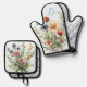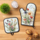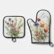 Cocina mitt y/o afiche con diseño de flores silvestres. Cada objeto está decorado con diferentes ramos de flores acuáticas. Los colores son azul, naranja, rosa y amarillo con tallos verdes. Añadir un elegante guión inicial en azul claro a la parte superior del mitt. Compra como un conjunto o por separado.