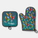 Añada un toque de elegancia y naturaleza a la cocina con este conjunto de mitt y potholder, que cuenta con obras de arte de colibríes coloridos de tonos pastel en vuelo sobre un fondo azul océano. Personalizar con nombre y/o negocio. Copyright W.H. Sim. Todos Los Derechos Reservados. Ver más en zazzle.com/word2art