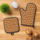 Manejar de forma segura bandejas de hornear, hojas de galletas y molduras de aleta del horno con este portaobjetos con guarnecido negro que muestra la imagen de una flor de Collarette Dahlia roja impresa en un patrón repetido sobre un fondo amarillo. ¡Un bonito diseño floral! Seleccione del estilo del soporte cuadrado de la olla o el estilo del mitt del horno, o pida un conjunto de ambos. Imagen impresa en un solo lado.
