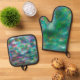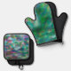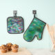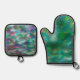 Una cacerola de horno y un portaobjetos con fotos de un esquema colorido.