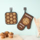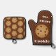 Un juego de mitt de horno y portamaletas que dice "One Smart Cookie" y presenta un patrón de galletas de chocolate sonrientes. Añade este juego a tu carrito, llévate a casa y luego hornea algo delicioso! Comida Cuidada Una Cocina Inteligente Oven Mitt & Pot Holder Set Sweetsham Food Art | ©Melissa Patton - Artista/Ilustrador
