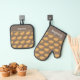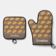 Elegante guante de horno con temática gastronómica y portamaletas, con un patrón de comida británica de pastas de Cornualles. Ambos tienen texto personalizable para que añada su propio nombre o mensaje
