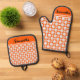 Cualquier Nombre Cute Floral Daisy Pattern Oven Mitt & Pot Holder Set. Presenta un diseño de margarita naranja y blanco. Una mirada fresca y alegre con unos días bonitos para alegrar tu día. Añade tu elección de nombre para un toque realmente personalizado.