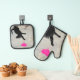 Set De Manoplas Cute Black Cat Playing with A Pink Heart