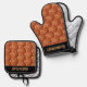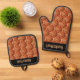 Diseño de baloncesto Oven Mitt y Conjunto de agujeros de ollas con texto de personalizable en la franja negra.