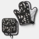 Mantenga las manos fuera de las ollas calentadas y prevenga los accidentes de quemadura con la ayuda de este juego de soporte de Oven Mitt & Pot de diseño geométrico blanco y negro.