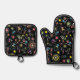 Set De Manoplas Doodles de cultura kawaii japonesa sobre negro