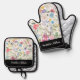Set De Manoplas Dusty Floral Greenary Script Personalizado Regalo
