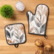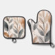 Este juego de manta y portamaletas de horno presenta una imagen de estilo boho de arte moderno y abstracto. La imagen incluye varios productos botánicos en tonos neutros de color turbio o beige y gris sobre un fondo blanco. Disponibles en forma de set o para su compra individual, estos accesorios de cocina de estilo contemporáneo le darán un toque natural a su hogar.