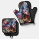 Una fabulosa imagen de fantasía de un dragón azul plateado en un pico de montaña, contra una galaxia de estrellas y nebulosas. Perfecto para cualquiera que ame la fantasía y los dragones. Coincide con el delantal "El dragón y las estrellas".