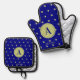Set De Manoplas Elegant Gold & Blue Star Pattern Monogram