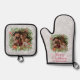 Elegant Holly Wreath Merry Christmas Photo Holiday Oven Mitt & Pot Holder Set. Spread holiday cheer with these elegant Merry Christmas kitchen set. Featuring a classic holly wreath design with vibrant red berries and green leaves, set against a subtle grey background adorned with delicate white snowflakes. This festive design is perfect for sending warm wishes to friends, family, and colleagues during the most wonderful time of the year. Add your photo and family name.