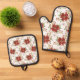Set De Manoplas Elegant Winter Poinsettia Floral Pattern