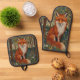 Set De Manoplas Elegante animal retro boho rojo zorro