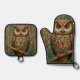 Set De Manoplas Elegante búho retro bohemio vegetación forestal