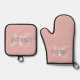 Monograma moderno de escritura rosa de color rosa Oven Mitt & Pot Holder Set. Personaliza con el nombre y la inicial.
