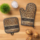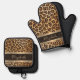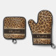 Set De Manoplas Elegante Patrón Leopard Marrón y Banda de Oro Nomb