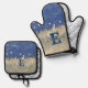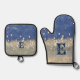 Set De Manoplas Elegante Purpurina azul Bokeh Monograma