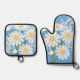 Set De Manoplas Elegantes margaritas blancas florales en azul
