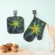Set De Manoplas Estrella abstracta, brillante arte azul verde dora