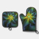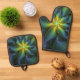 Set De Manoplas Estrella abstracta, brillante arte azul verde dora