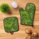 Fantasy artwork of big green leaves forming part of a lush tropical plant forest.