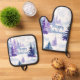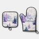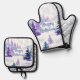 Set De Manoplas Felices fiestas Morado Invierno Árboles Nevados