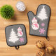 Relájese en su cocina de vacaciones con el juego "Merry Christmas in Pink" Oven Mitt & Pot Holder Set. Este delicioso dúo combina funcionalidad con un toque de elegancia y encanto, haciendo que sus Navidades cocinen y horneando sesiones extra especiales con su árbol blanco de Navidad, copos de nieve rosados y muñeco de nieve blanco y rosa.