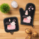 Celebra las vacaciones con estilo con el juego "Feliz Navidad en rosa" Oven Mitt & Pot Holder con Santa Rosa en el trineo, Hombre de Nieve y Corazones. Es la combinación perfecta de belleza y practicidad, asegurando que su temporada festiva sea segura y elegante.