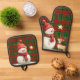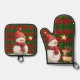 Set De Manoplas Festividad Clásica Red Green Gold Tartán Snowman