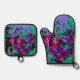 Set De Manoplas Flor de jardín rosada, púrpura y rosada